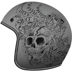 MT Helmets Casque Jet Vintage MT Casques Le Mans SV 2 Skull & Roses A2 Gris Mat
