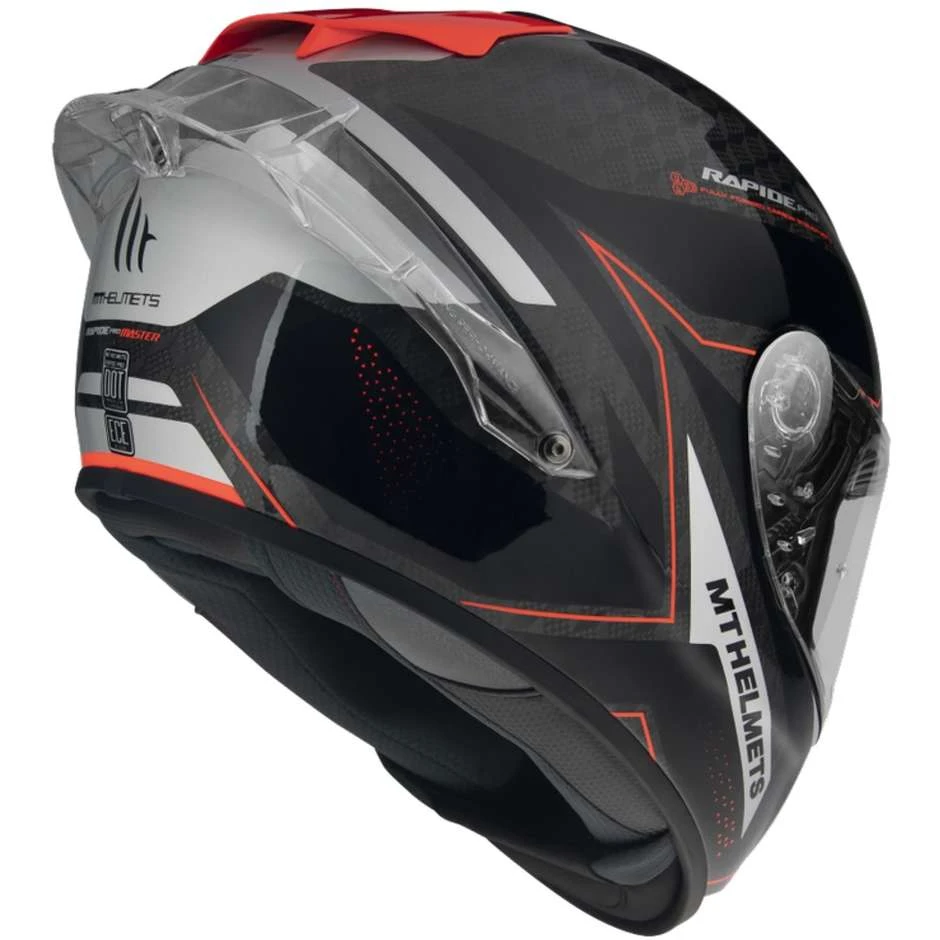 Rapide Pro Carbone. Casque intégral au style sportif, en carbone, léger et compact, équipé d’une grande visière transparente et d’une fermeture double D pratique, idéal sur piste, également parfait au quotidien, sur route ou sur circuit urbain